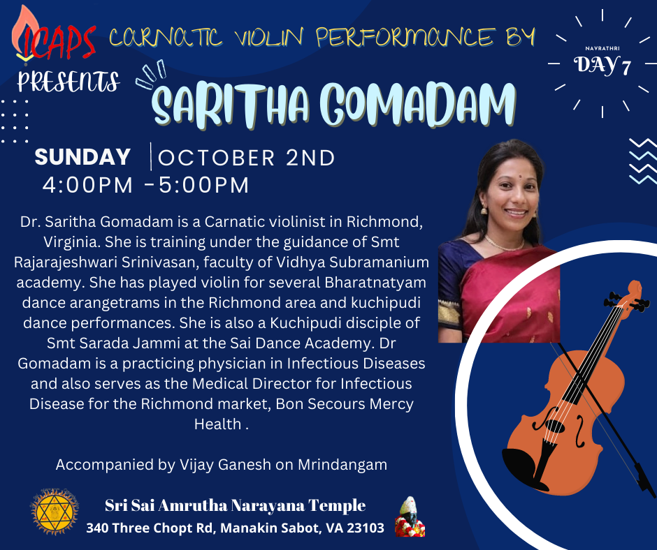DAY 7 – Carnatic Violin Performance by Saritha Gomadam